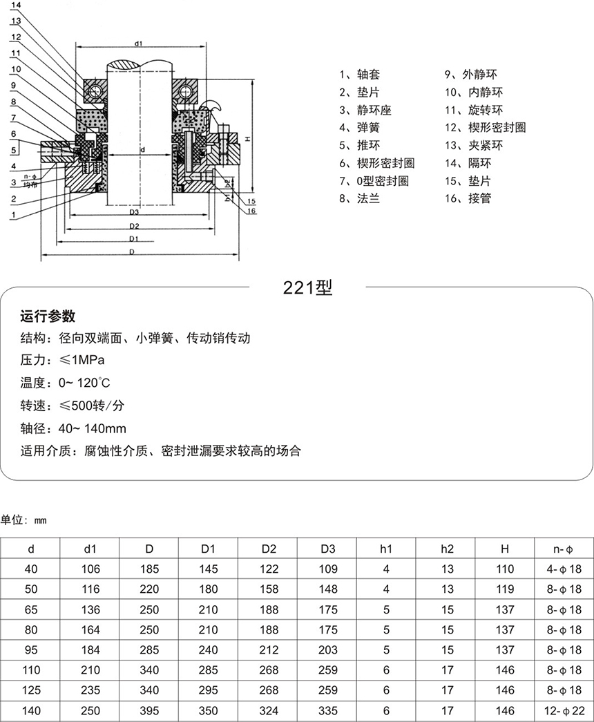 (1)安裝前先檢查軸的軸向竄動(dòng)不大于0.5mm,徑向擺動(dòng)不大于0.5m。安裝機(jī)械密封的法蘭與軸線(xiàn)不垂直度不大于0.05m,安裝機(jī)械密封部位的軸公差為h8,光潔度為3.2。