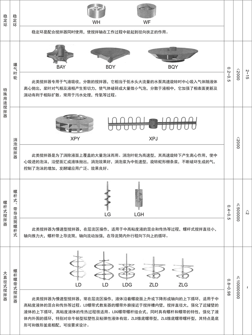 近30類,計140多種攪拌器,從常見的(包括已有的HB5標準,SB90標準各種攪拌器)到各種復雜狀或特殊用途的攪拌器。可按H/T2123-91標準的各種規(guī)格尺寸系列制造,也可根據(jù)用戶的生產(chǎn)工藝要求,代為設計制造各種特殊要求。特殊規(guī)格或特殊用途的攪拌器。